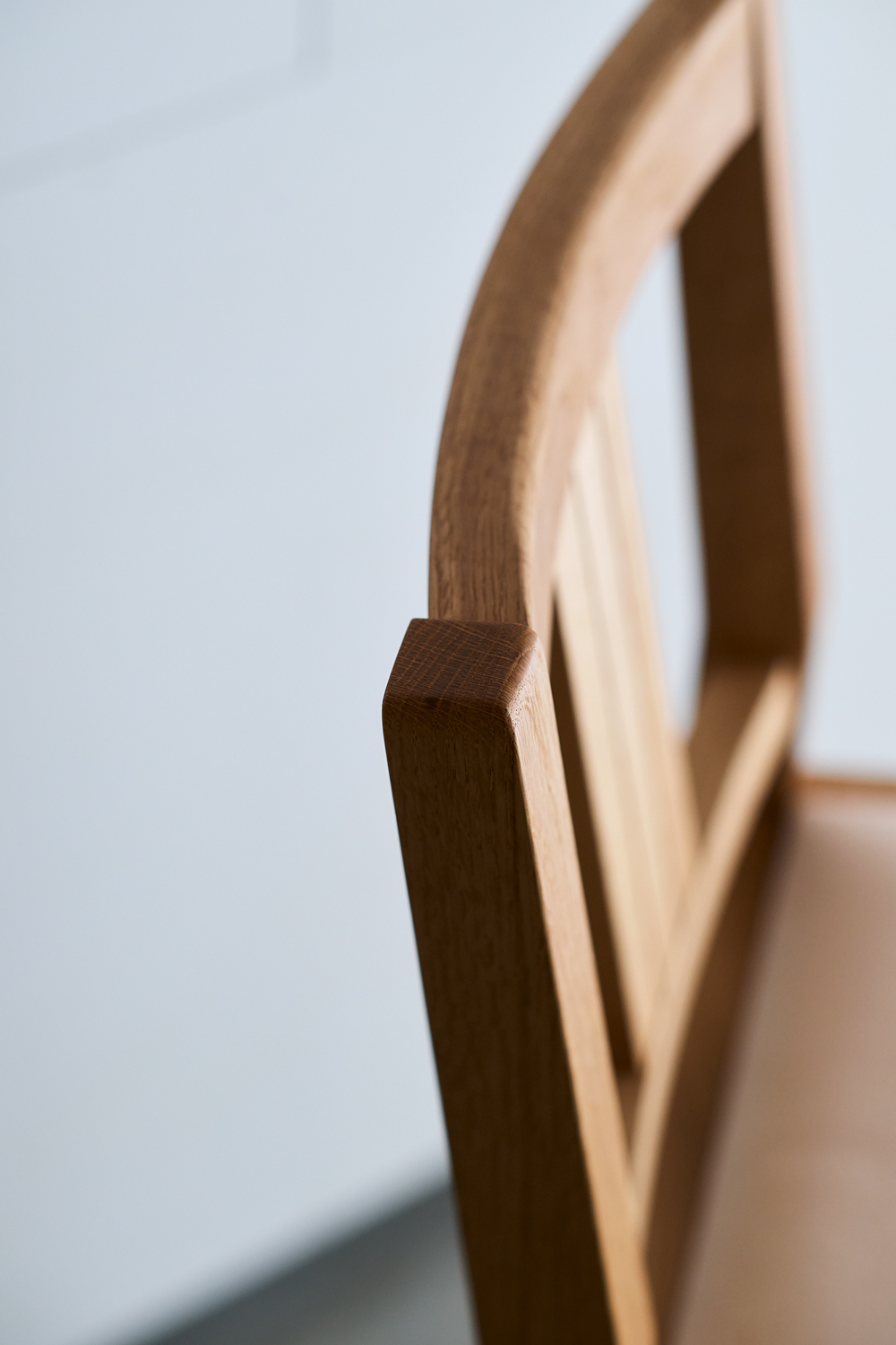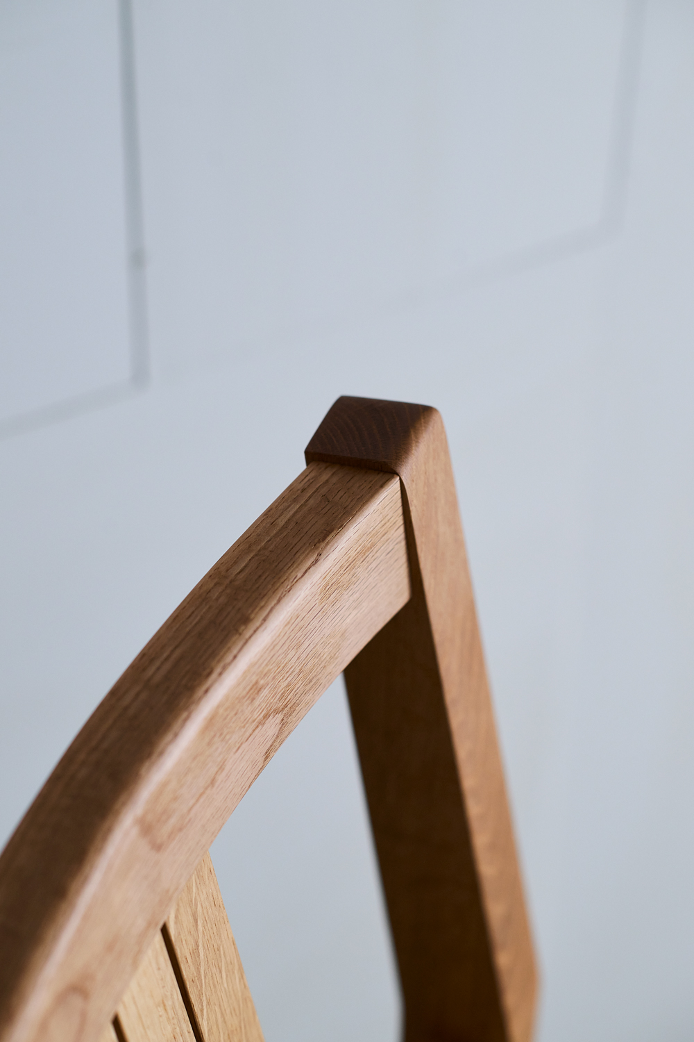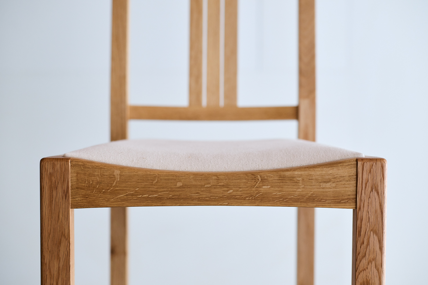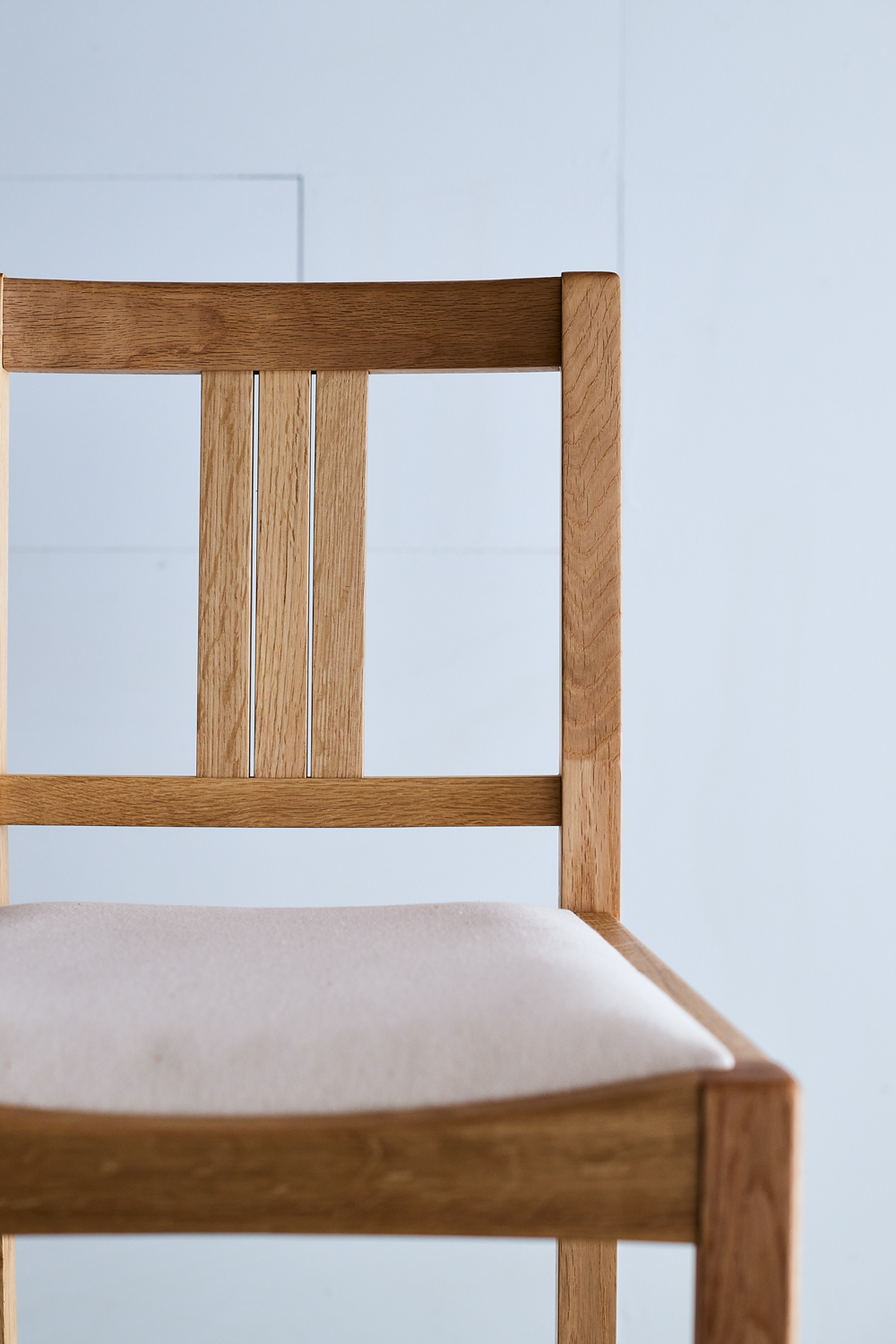 TypeⅡは、無垢材を丁寧に削り出した、流れるような曲線が特徴。職人の手で丁寧に仕上げられた滑らかな背面は、背中に心地よく寄り添います。部材同士のなめらかな接合から、手仕事ならではの柔らかさも感じられます。TypeⅢは、無垢材本来の表情を活かし、直線を基調としたシャープなフォルム。古いチェアを思わせる素朴さと、温もりのある佇まいが魅力です。
